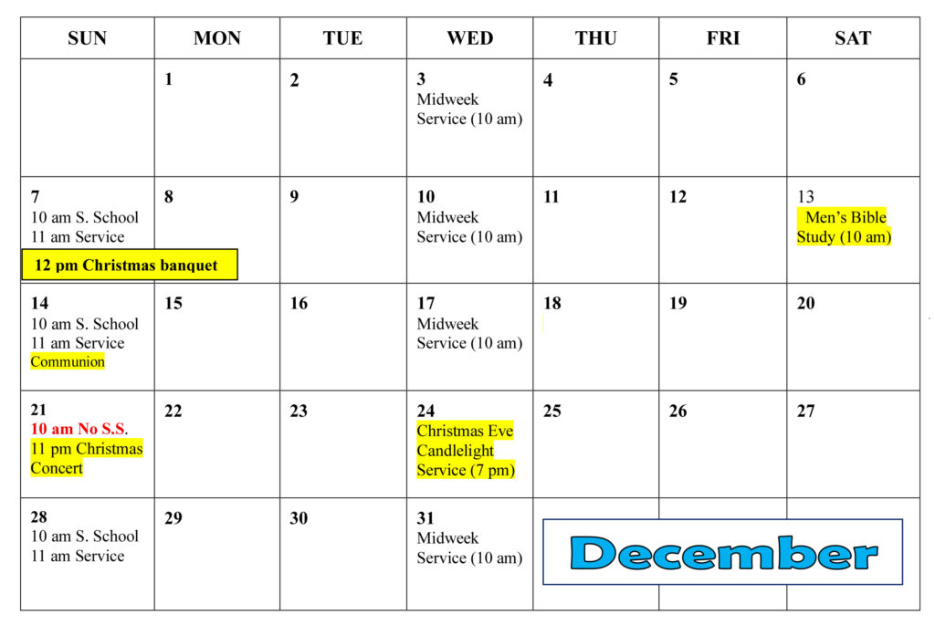 Regretfully, we are canceling tomorrow’s church service (Dec. 28) as the entire parking lot and drive way is a sheet of ice and there is more freezing rain scheduled to hit us tomorrow at 10:00 AM. Please remain safe!